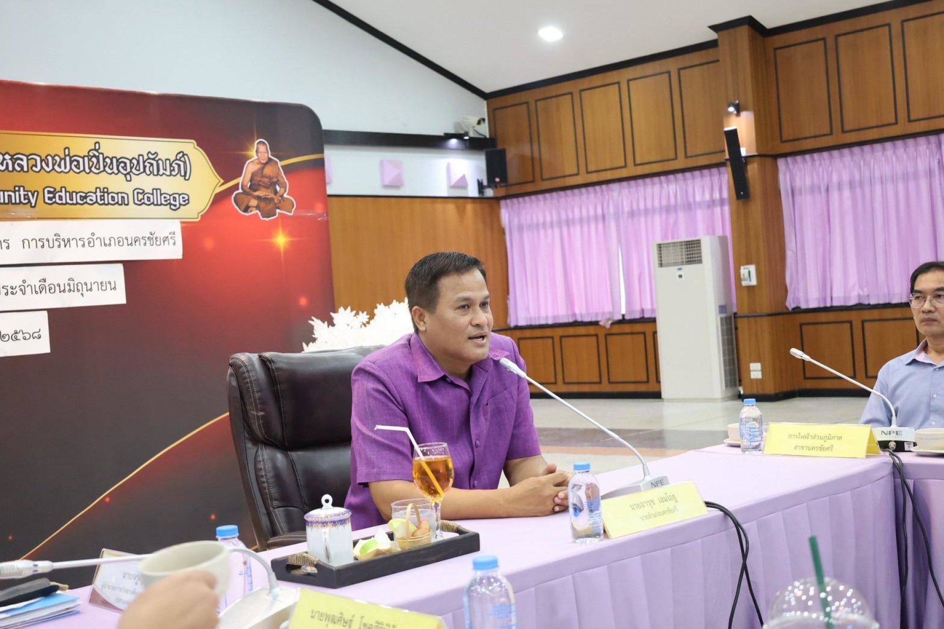 วิทยาลัยการอาชีพบางแก้วฟ้า(หลวงพ่อเปิ่นอุปถัมภ์) นำโดยนายจรูญ อินไข ผู้อำนวยการวิทยาลัย คณะผู้บริหาร ร่วมต้อนรับนายอารุช เอมโอฐ นายอำเภอนครชัยศรี และเข้าร่วมประชุมคณะกรรมการ กบอ. หัวหน้าส่วนราชการ หัวหน้าหน่วยงานรัฐวิสาหกิจ ผู้บริหารองค์กรปกครองส่วนท้องถิ่น ธรรมาภิบาลอำเภอนครชัยศรี ครั้งที่ 6/2568 เพื่อแจ้งให้เกษตรกรเตรียมความพร้อมรับมืออุทกภัยในช่วงฤดูฝนและแจ้งองค์การบริหารส่วนท้องถิ่นให้การสนับสนุนการดำเนินงานของวิสาหกิจชุมชนตามความเหมาะสม ณ อาคารหอประชุม วิทยาลัยการอาชีพบางแก้วฟ้า(หลวงพ่อเปิ่นอุปถัมภ์) วันที่ 30 พฤษภาคม 2568