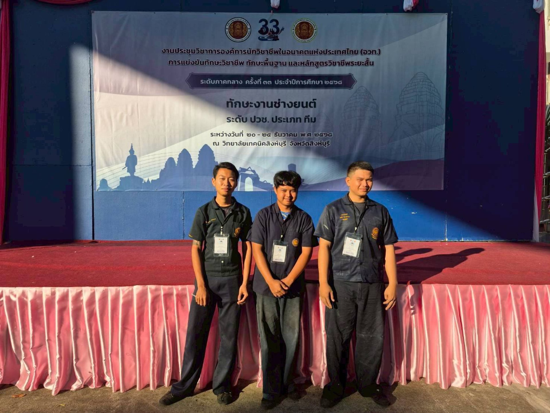 วิทยาลัยการอาชีพบางแก้วฟ้า(หลวงพ่อเปิ่นอุปถัมภ์) นำโดยนายจรูญ อินไข ผู้อำนวยการวิทยาลัย มอบหมายให้นายพงษ์ศักดิ์ พบสุภาพ นำนักเรียน สาขาวิชาช่างยนต์ เข้าร่วมการแข่งขันทักษะงานช่างยนต์ ระดับ ปวช. ประเภททีม งานประชุมวิชาการองค์การนักวิชาชีพในอนาคตแห่งประเทศไทย (อวท.) การแข่งขันทักษะวิชาชีพ ทักษะพื้นฐานและหลักสูตรวิชาชีพระยะสั้น ระดับภาคกลาง ครั้งที่ 33 ประจำปีการศึกษา 2568 ณ วิทยาลัยเทคนิคสิงห์บุรี จ.สิงห์บุรี ระหว่างวันที่ 20-24 ธันวาคม 2568