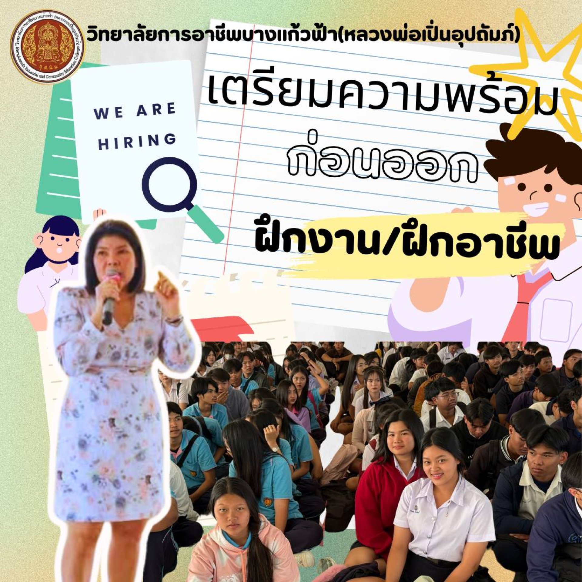 วิทยาลัยการอาชีพบางแก้วฟ้า(หลวงพ่อเปิ่นอุปถัมภ์) นำโดยงานอาชีวศึกษาระบบทวิภาคี คณะครู และนักเรียน นักศึกษา เข้าร่วมประชุมเตรียมความพร้อมก่อนออกฝึกงานและฝึกอาชีพ ประจำภาคเรียนที่ 1 ปีการศึกษา 2568 ณ อาคารวิทยบริการ วันที่ 8 มกราคม 2568