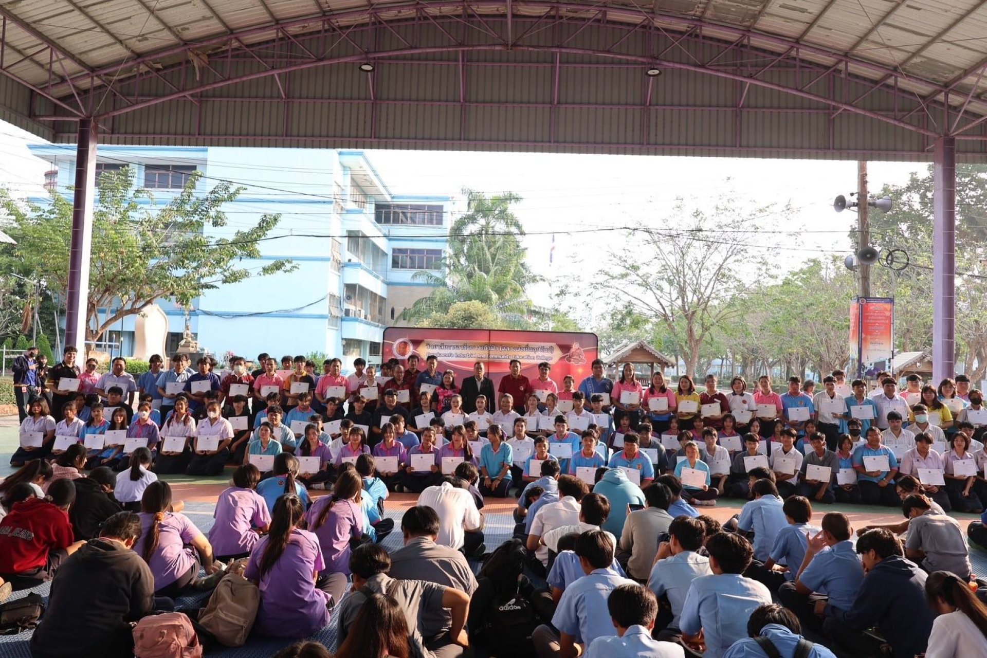 ดร.จรูญ เตชะเจริญกิจ หัวหน้าหน่วยศึกษานิเทศก์ และคณะผู้บริหารวิทยาลัยการอาชีพบางแก้วฟ้า(หลวงพ่อเปิ่นอุปถัมภ์) ร่วมมอบเกียรติบัตรให้แก่นักเรียนระดับประกาศนียบัตรวิชาชีพ (ปวช.1-3) ผู้เข้าร่วมกิจกรรมเข้าแถวหน้าเสาธง ประจำภาคเรียนที่ 2 ปีการศึกษา 2567 ครบ 100% ณ อาคารโดมอเนกประสงค์ เมื่อวันที่ 6 กุมภาพันธ์ 2568
