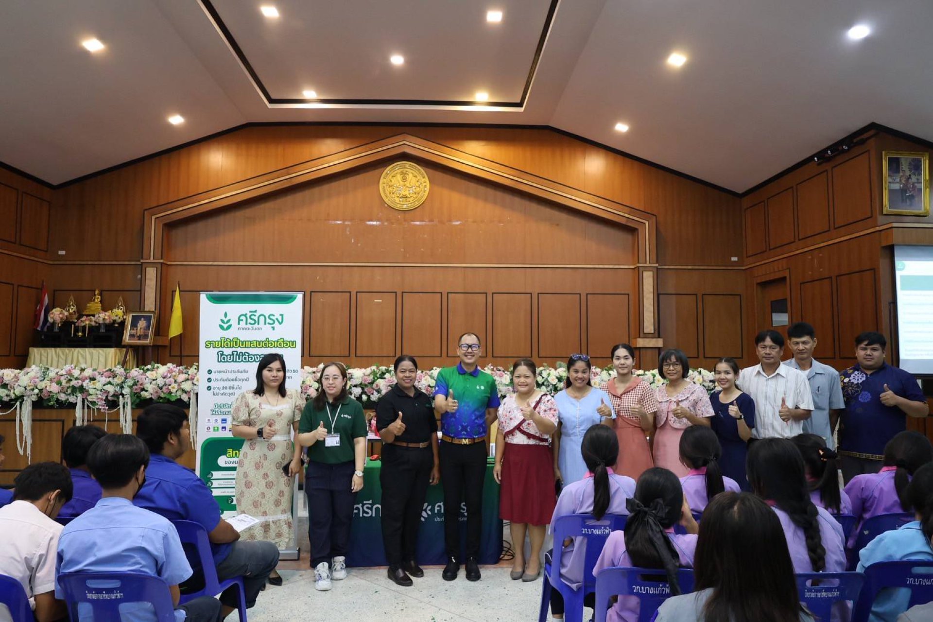วิทยาลัยการอาชีพบางแก้วฟ้า(หลวงพ่อเปิ่นอุปถัมภ์) นำโดยนายจรูญ อินไข ผู้อำนวยการวิทยาลัย มอบหมายให้นางสาวศิริวรรณ จันทร์เจริญ รองผู้อำนวยการฝ่ายบริหารทรัพยากร คณะครู และนักเรียน ระดับชั้น ปวช.2 และ ปวช.3 เข้าร่วมโครงการรณรงค์และส่งเสริมให้ยุวชนคนรุ่นใหม่รอบรู้เรื่องประกันภัยและใส่ใจเพื่อนร่วมทาง โดย ศรีกรุง ณ อาคารหอประชุม เมื่อวันพุธที่ 13 สิงหาคม 2568