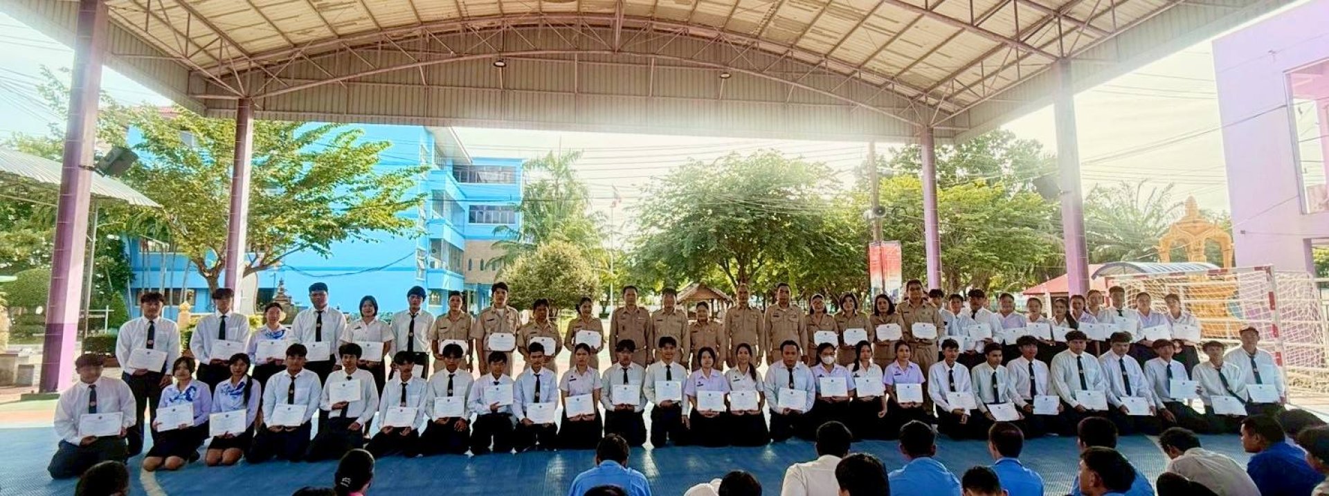 มอบเกียรติบัตรให้แก่ครูที่ปรึกษาและนักศึกษา ระดับประกาศนียบัตรวิชาชีพชั้นสูง (ปวส.) เข้าแถว 100 %