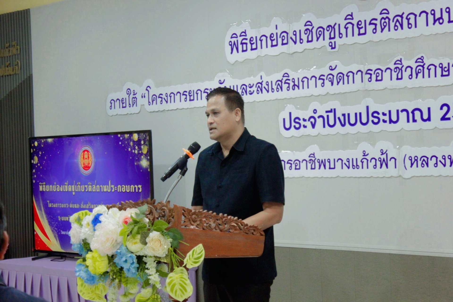 วิทยาลัยการอาชีพบางแก้วฟ้า(หลวงพ่อเปิ่นอุปถัมภ์) นำโดยนายจรูญ อินไข ผู้อำนวยการ คณะผู้บริหาร ครู และบุคลากรทางการศึกษา ร่วมต้อนรับตัวแทนสถานประกอบการ ผู้เข้าร่วม พิธียกย่องเชิดชูเกียรติสถานประกอบการ ภายใต้ "โครงการยกระดับและส่งเสริมการจัดการอาชีวศึกษาระบบทวิภาคีสมรรถนะสูงในสถานศึกษา" ประจำปีงบประมาณ 2568 โดยมีนายอารุช เอมโอฐ นายอำเภอนครชัยศรี ให้เกียรติเป็นประธานในพิธี ณ ห้องประชุมอาคารวิทยบริการ วันที่ 29 ตุลาคม 2568