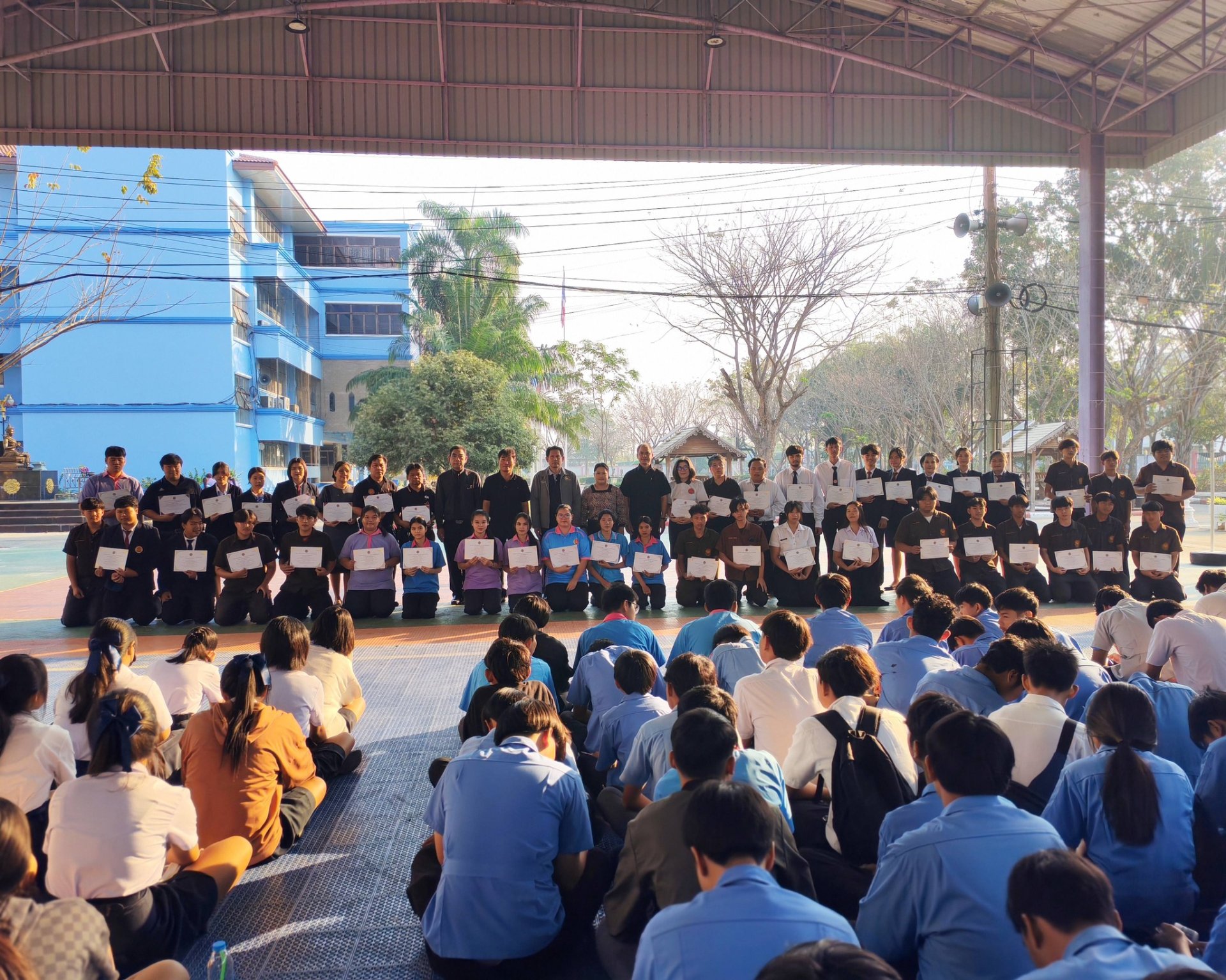 วิทยาลัยการอาชีพบางแก้วฟ้า(หลวงพ่อเปิ่นอุปถัมภ์) นำโดยนายจรูญ อินไข ผู้อำนวยการวิทยาลัย คณะผู้บริหาร ร่วมมอบเกียรติบัตรให้แก่นักเรียนระดับประกาศนียบัตรวิชาชีพ (ปวช.1-3) ผู้เข้าร่วมกิจกรรมเข้าแถวหน้าเสาธง ประจำภาคเรียนที่ 2 ปีการศึกษา 2568 ครบ 100% ณ อาคารโดมอเนกประสงค์ วันที่ 20 กุมภาพันธ์ 2569